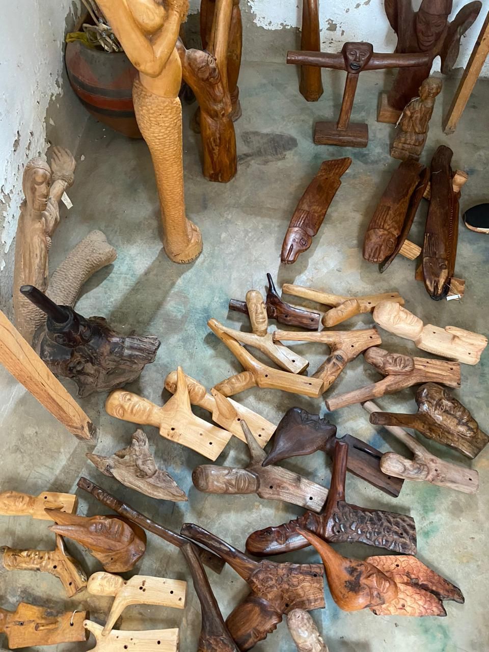 Murathi's traditional African woodcarving often uses indigenous woods such as mahogany, ebony and teak. Murathi employs traditional Venda woodcarving techniques passed down through generations, using hand-made tools and chisels.