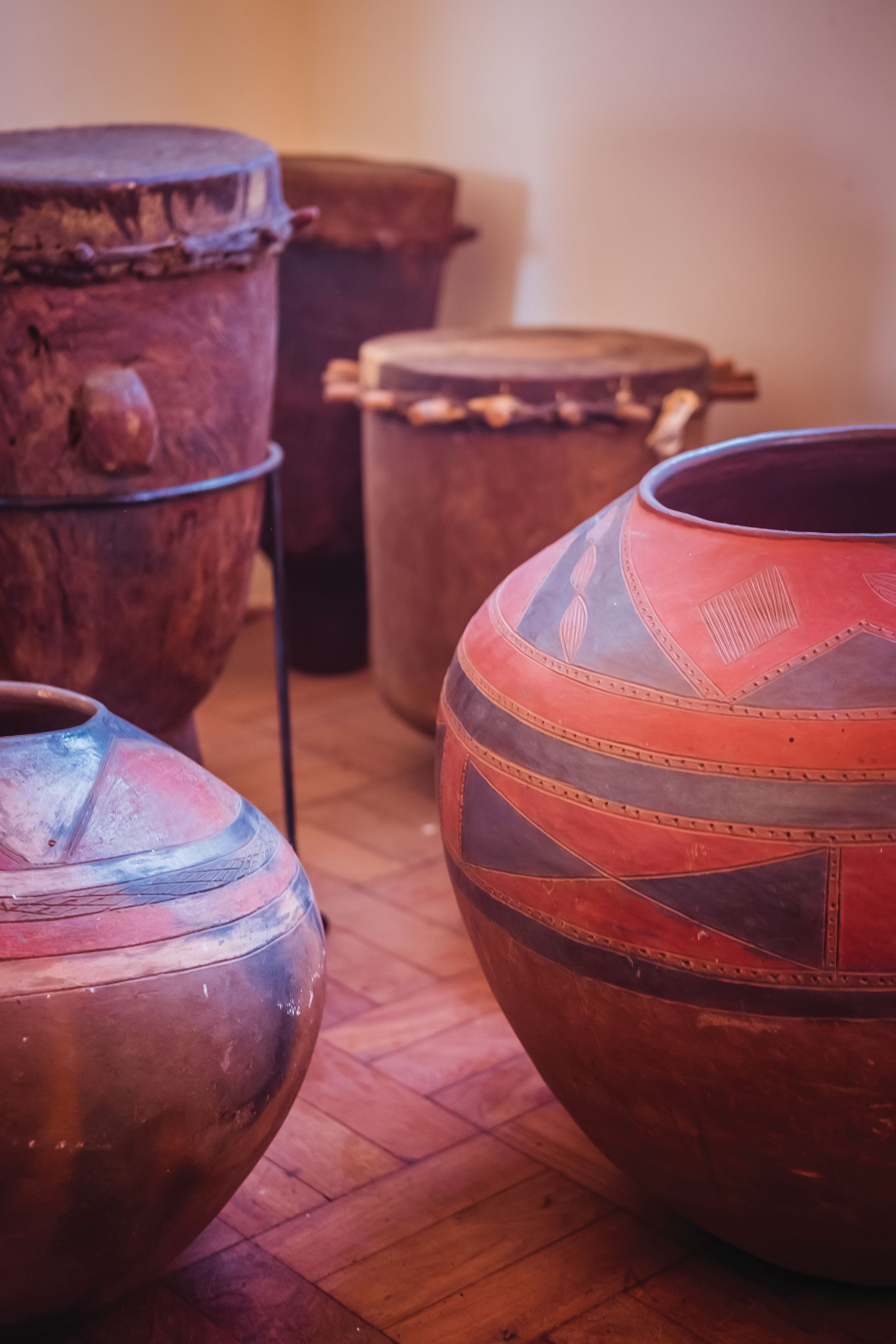 Mukodeni Venda pots are crafted from local clay, which is shaped and decorated by skilled artisans. The pots often feature traditional geometric designs and vibrant colors.